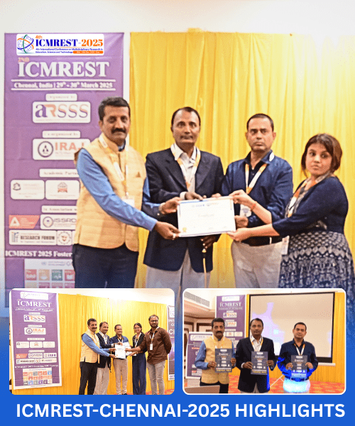 Welcome to the 5th International Conference on Multidisciplinary Research in Education Science and Technology (ICMREST-2026) Organized by: ARSSS and in Collaboration with IRAJ during 9th and 10th May, 2026 at Chennai, India. This prestigious event brings together a global community of educators, researchers, and innovators to explore cutting-edge developments and interdisciplinary research across the fields of education, science, and technology. ICMREST-2026 offers a vibrant platform for engaging in insightful discussions, sharing pioneering research, and fostering meaningful academic and professional connections.